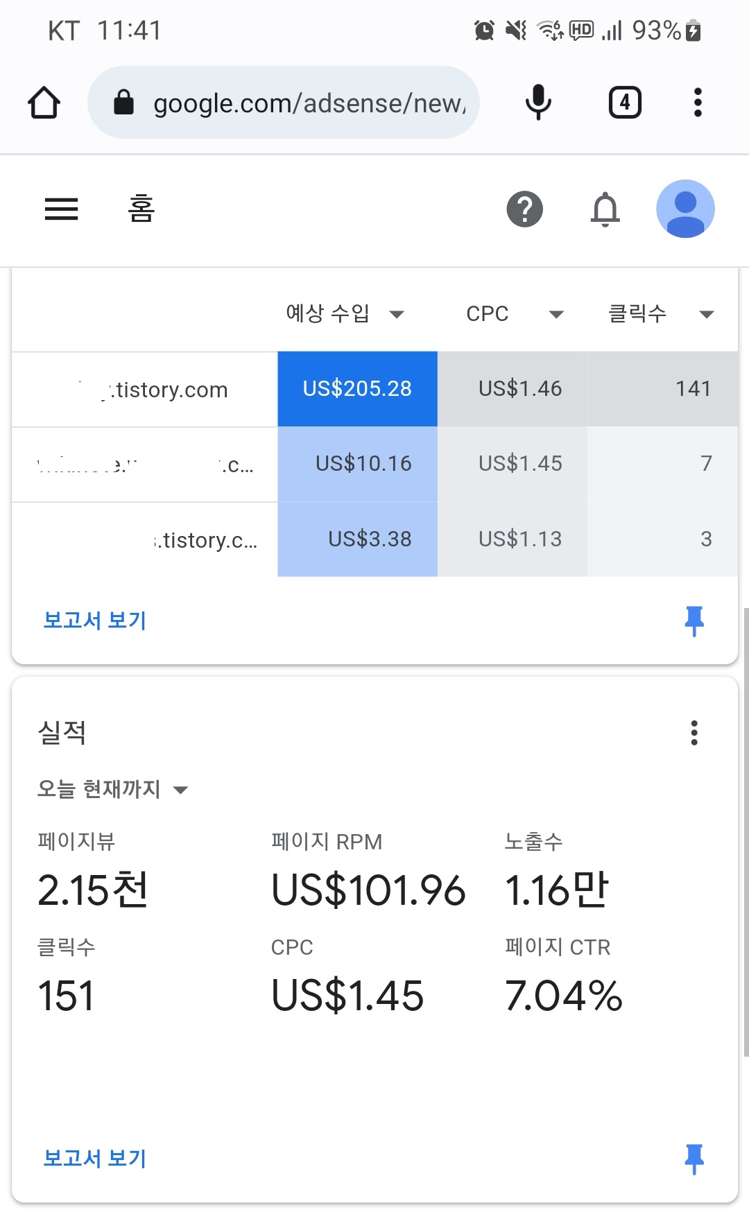 그리고 간만에 구글 애드센스 CPC와 RPM, CTR 수치가 높게 나와 기분좋습니다. 요즘 CPC가 떨어져 매우 의욕 상실이었는데 다양한 노력끝에 많이 끌어 올려 $1 대는 유지 중입니다. 대한민국 평균 기준으로 봤을때 RPM $101, CPC $1.45, CTR $7 보기 힘든 수치입니다. 즉 아시는 분들께서는 매우 높은 수치 임을 알수 있을것입니다.